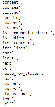 참고로 requests.get()을 통해 받아온 객체 안에 무엇이 있는지 보기 위해선 아래 명령어를 사용해서 확인하면 됩니다.