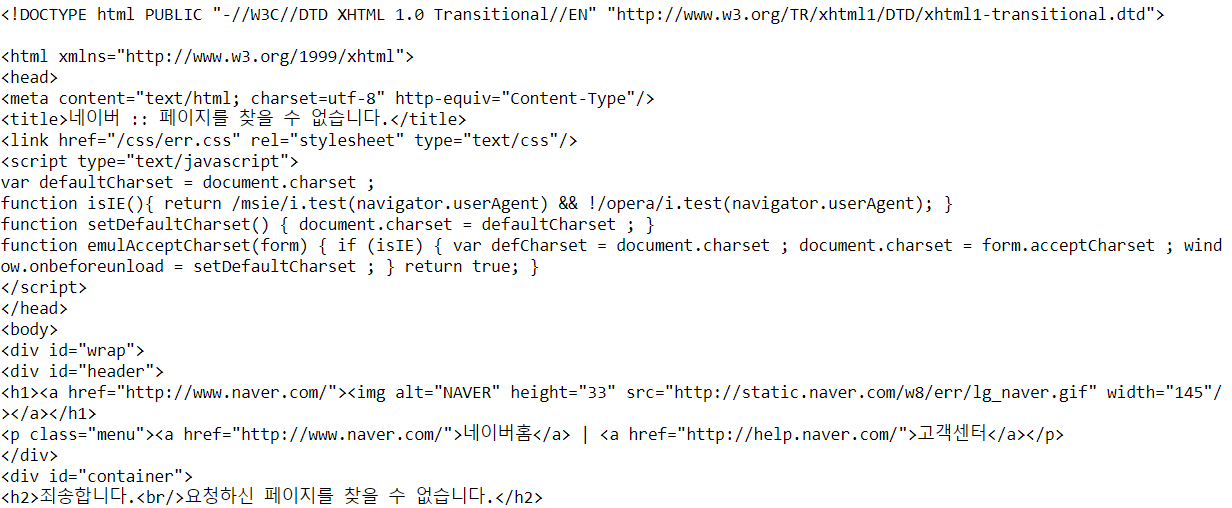 # 없는 페이지 요청시