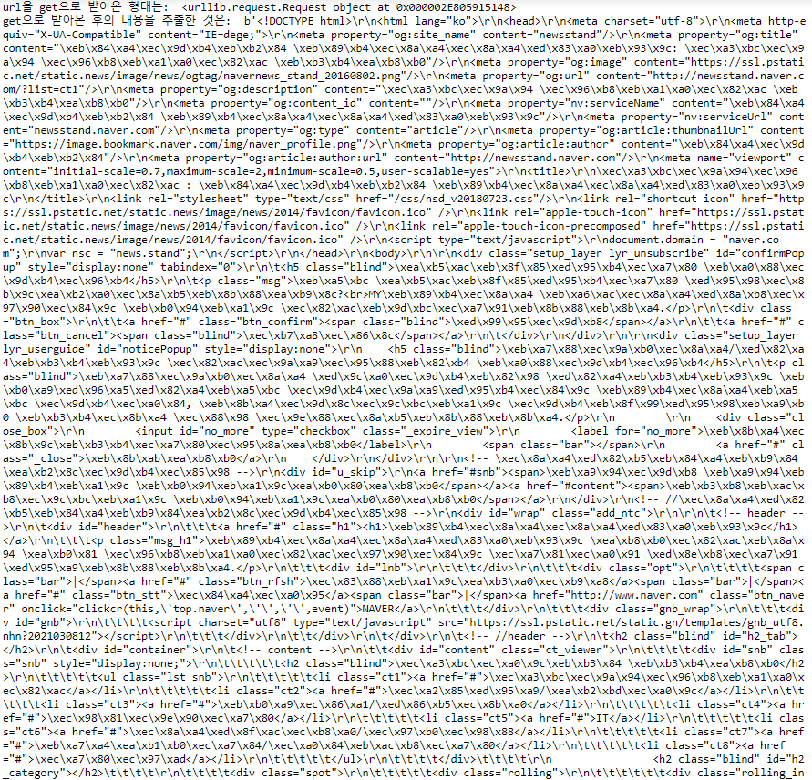 print('get으로 받아온 후의 문자열만 추출한 것은: ', html)