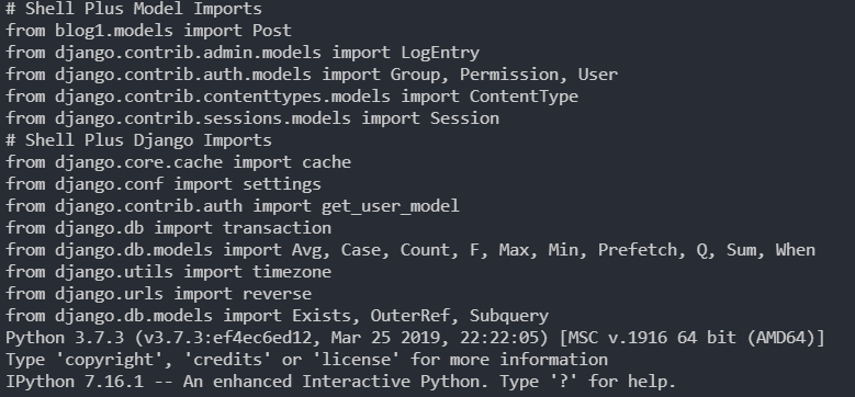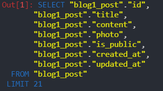 아래처럼 장고의 기본 QuerySet 을 ipython 터미널에 입력하면 이것의 실행을 위한 SQL 쿼리문이 함께 나타납니다.